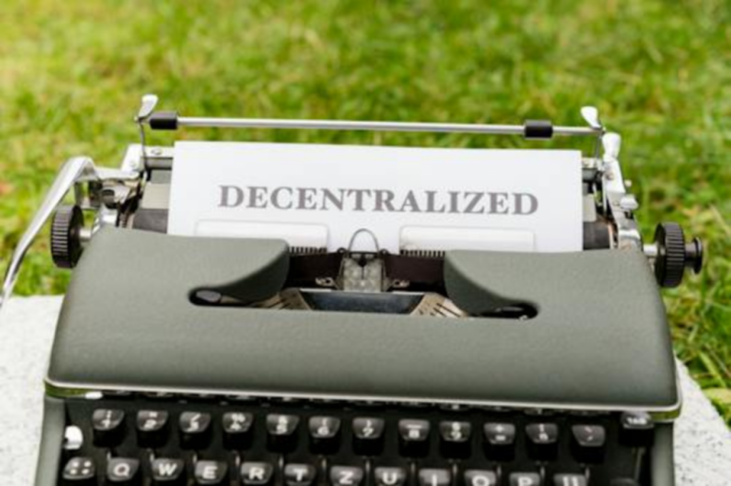 Alt-text: Paper attached to typewriter reading Decentralized